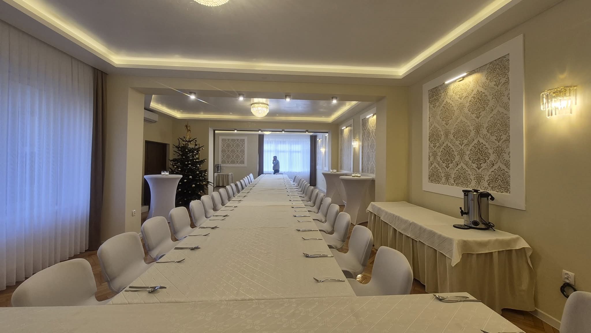 Sala bankietowo-szkoleniowa w naszym Cechu przeszła kompleksową modernizację, której celem było podniesienie standardu estetycznego oraz funkcjonalnego wnętrza. Zmieniono wystrój sali, nadając jej nowoczesny, elegancki charakter odpowiedni zarówno do organizacji uroczystości bankietowych, jak i spotkań szkoleniowych czy konferencyjnych.